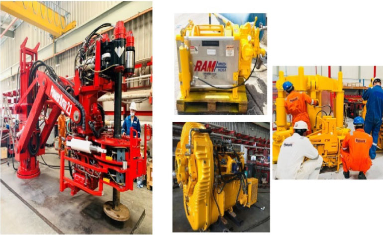 Mast & Sub raising cylinders, controls & HPU, snubbing units, Iron Roughnecks, Top Drives, Rotary tables, Power tongs, Pipe spinners, Air winches, Catwalks, Pipe racking systems, Bucking units, BOP handling systems, Cantilever Skidding systems, Jacking system hydraulics, gearboxes & lubrication, Cementing units, Coil tubing units, Power tongs, Batch mixers. Wireline units etc.